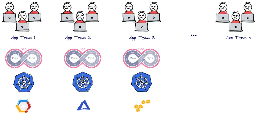 Out of nowhere, developers suddenly had to wrap their heads around complicated cloud-native tools just to do simple stuff like changing an environment variable or fixing a basic database setup. It’s wild! This has led to a crazy amount of mental strain, totally messing with the developer experience and dropping productivity through the floor. Just take a look at how bad things have gotten over the past 20 years. And honestly, there hasn’t been any sign that this is going to slow down or change anytime soon. We used the traditional platform as a service setup for almost ten years, but we found that it started to hold us back due to some major issues. The main problem is that our infrastructure has gotten super complex over time. Developers are swamped with all this infrastructure knowledge they need to have, and the platform itself has become a bottleneck when it comes to making infrastructure capabilities available. There are often many teams involved, which makes teamwork and coordination pretty tough. On top of that, figuring out security parameters and policies is harder than ever. Plus, with Kubernetes, when things go sideways, the impact can be massive.